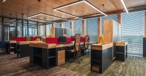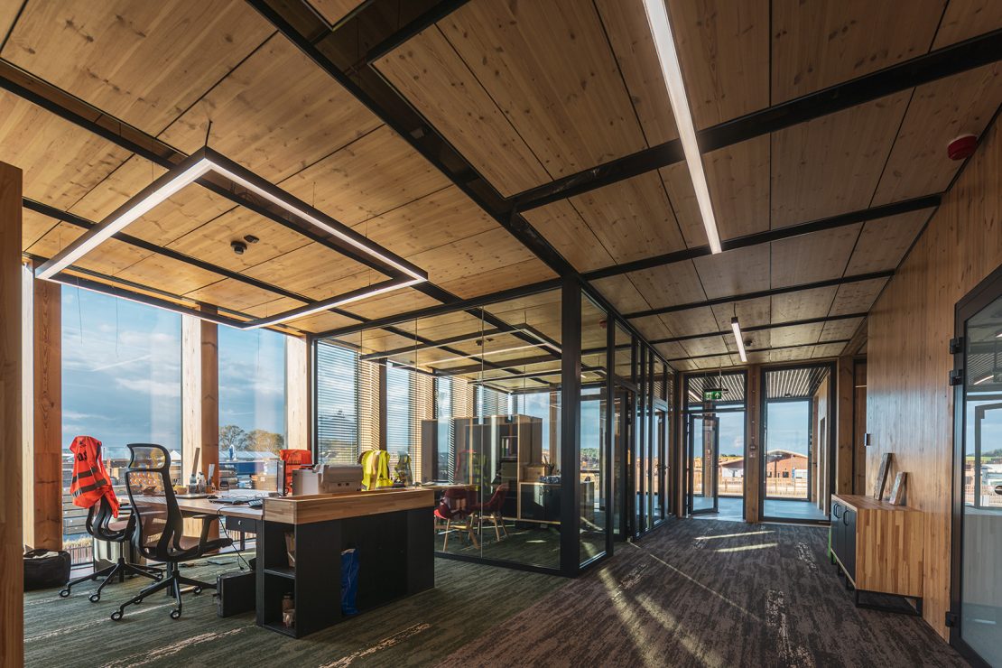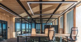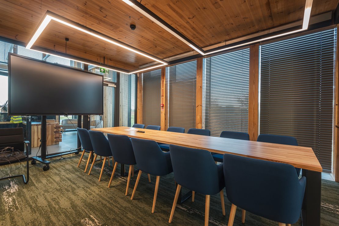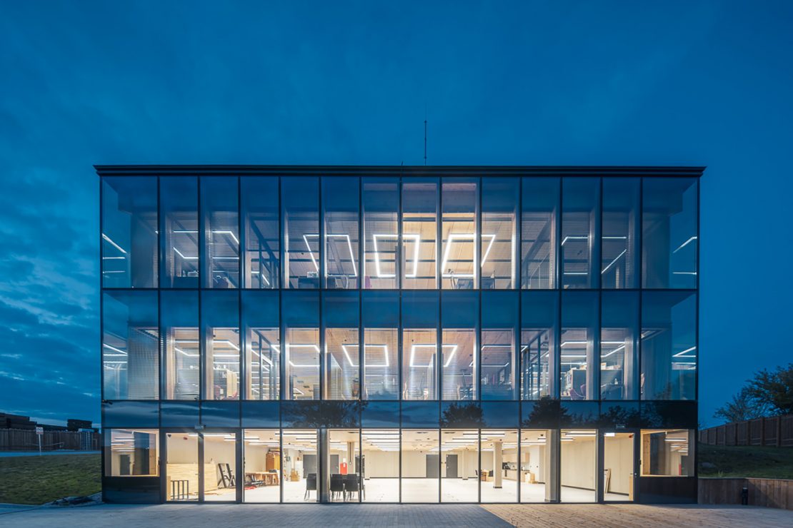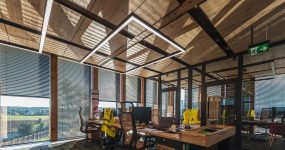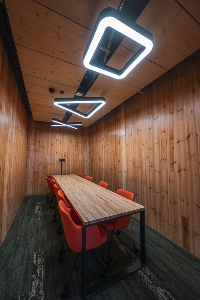 The lighting concept, created with LUXIONA luminaires, perfectly complements the building’s distinctive character. X-Line LED luminaires in a system version and elegant black finish form striking geometric compositions and long, continuous lines running through the office interiors. Additional accents are created by X-Wall and Artshape luminaires — Six, Three, Square, and X — adding rhythm, balance, and a refined aesthetic to the natural warmth of the wooden space.
