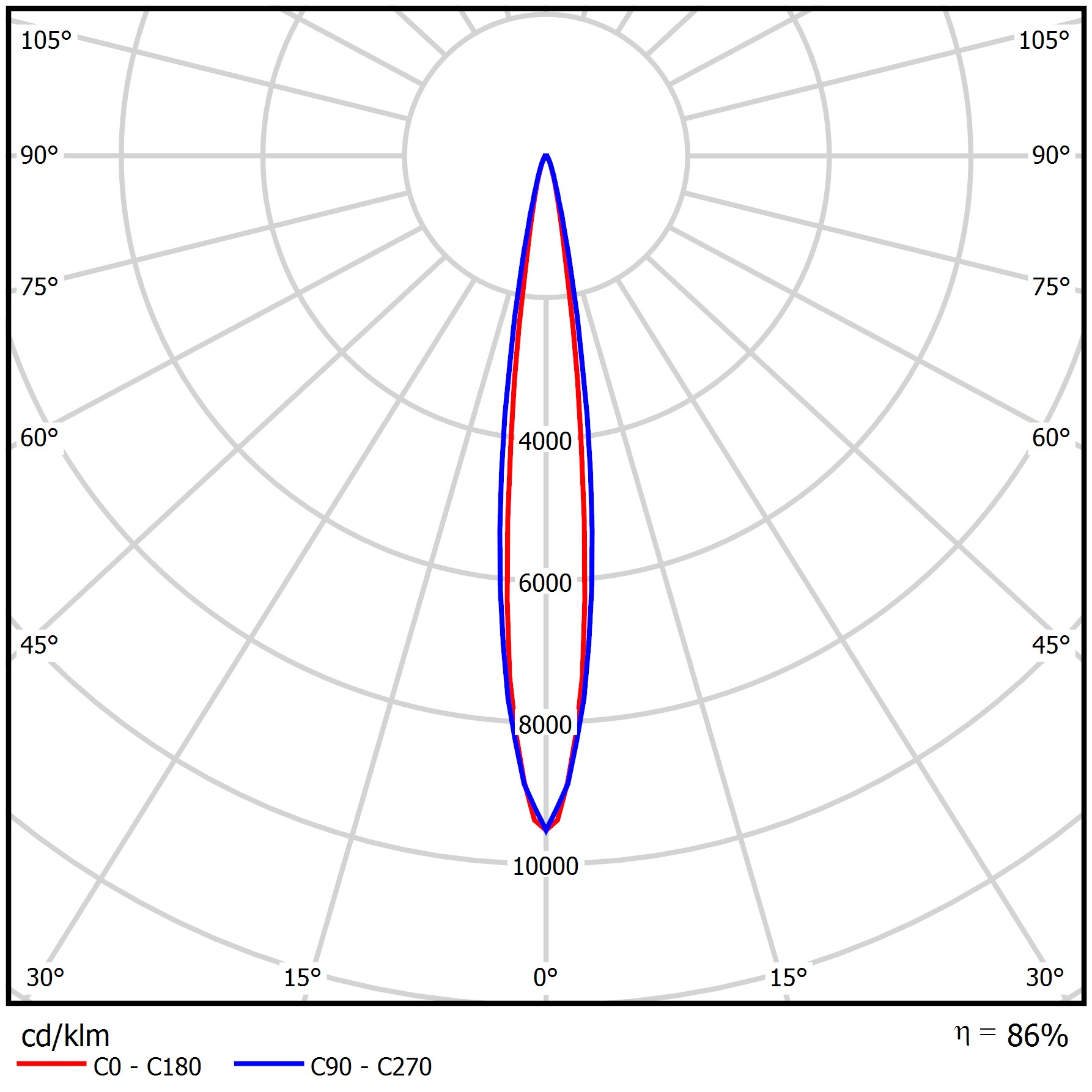 | Kąt rozsyłu światła [°] | (C0-C180) / (C90-C270) - 12,6° / 15,4° |