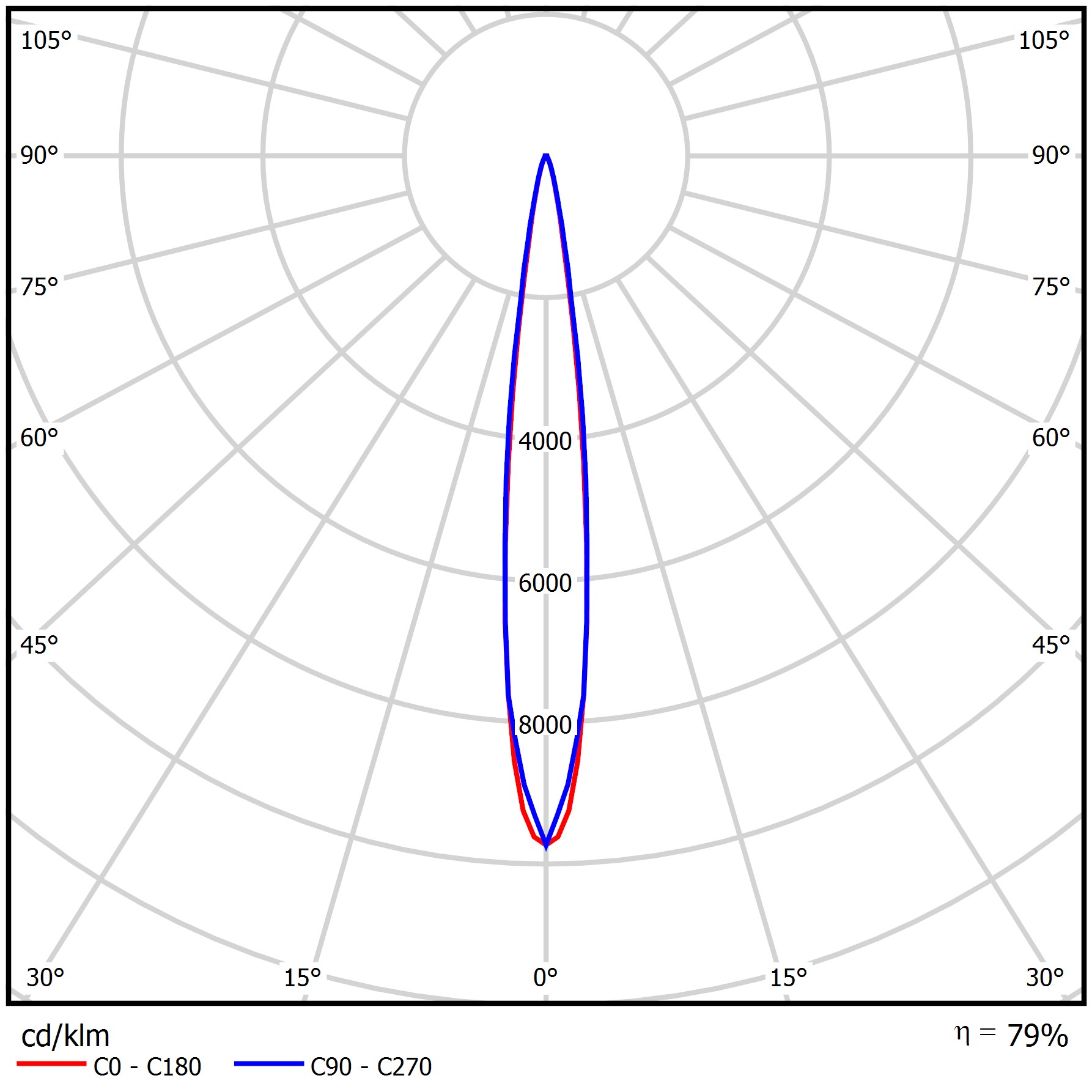 | Kąt rozsyłu światła [°] | (C0-C180) / (C90-C270) - 13° / 13,4° |
