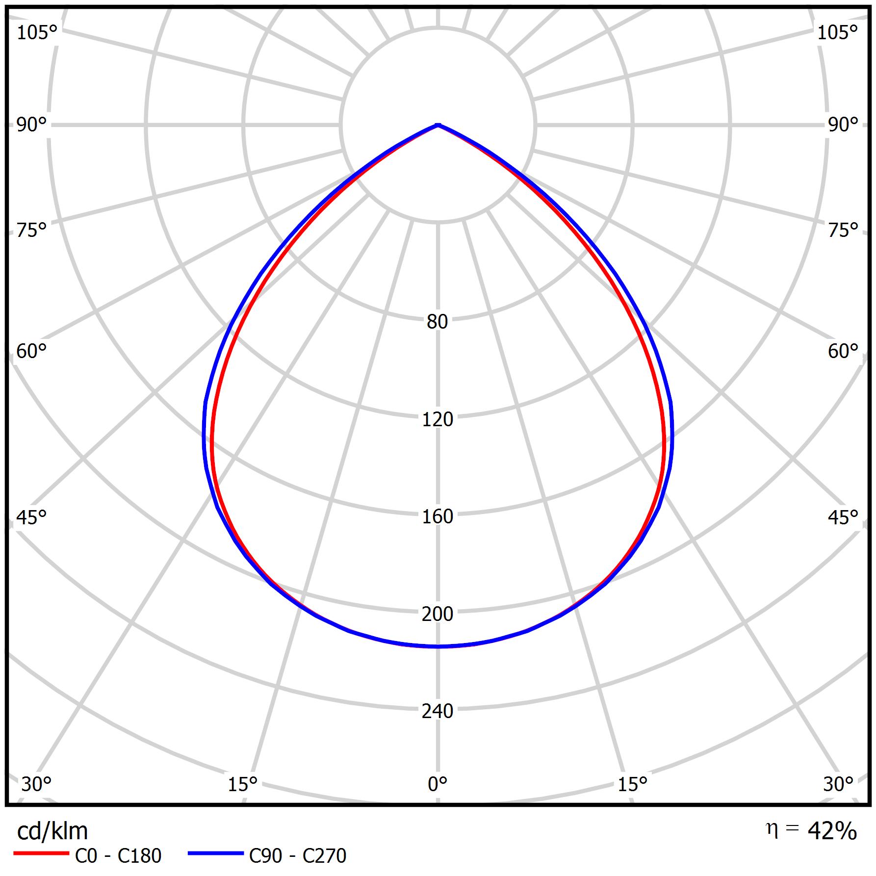| Kąt rozsyłu światła [°] | (C0-C180) / (C90-C270) - 92° / 95,6° |