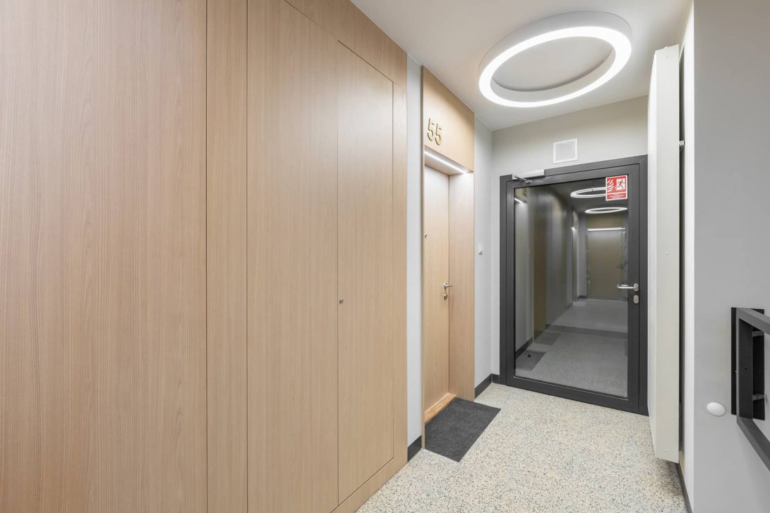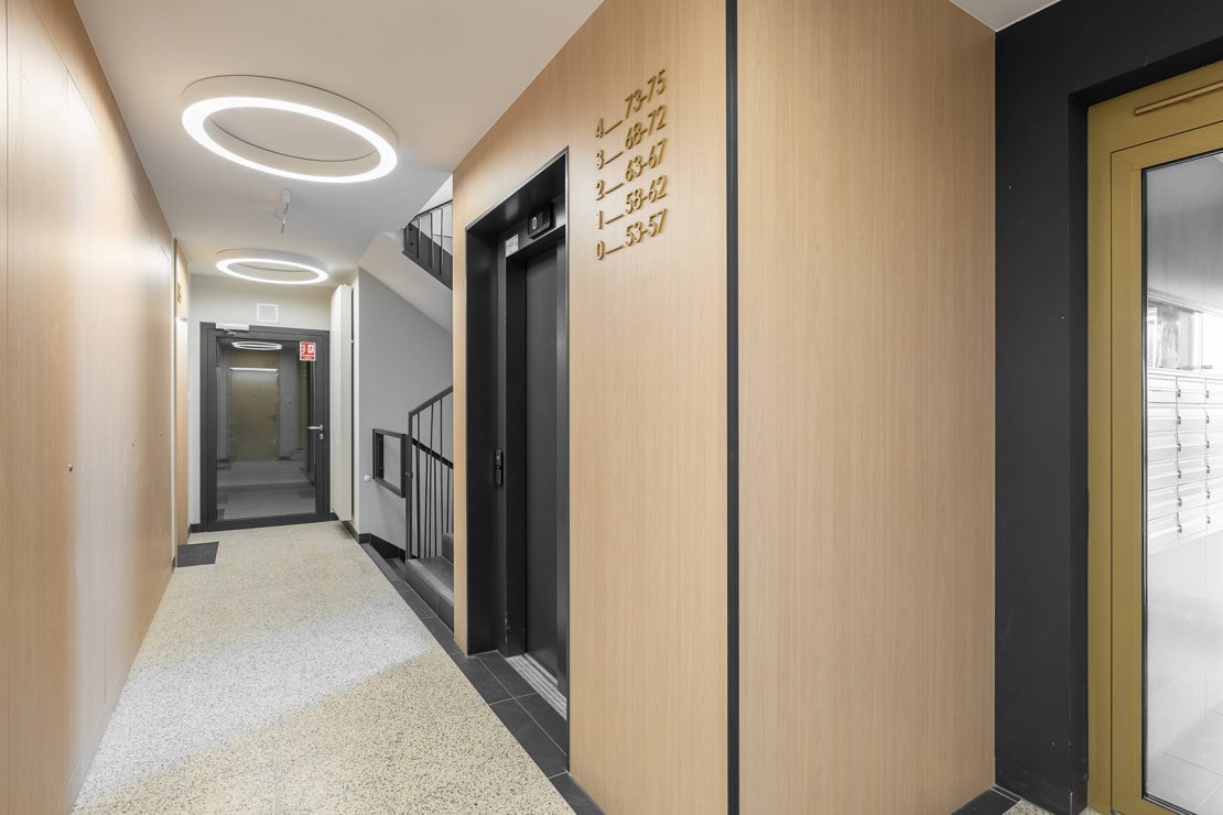 Oprócz ARTSHAPE ROUND LED, dostarczyliśmy szereg innych opraw oświetleniowych dostosowanych do konkretnych obszarów w budynku: NEPTUN LED COMPACT został wybrany do oświetlenia garaży, a oprawy RUBIN ROUND LED zostały zainstalowane na balkonach, zapewniając odpowiednie oświetlenie i jednocześnie podkreślając przestrzenie na zewnątrz. Schody zostały oświetlone za pomocą minimalistycznych opraw X-LINE SLIM SURFACE LED, dodając tym samym do ogólnej estetyki budynku.