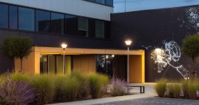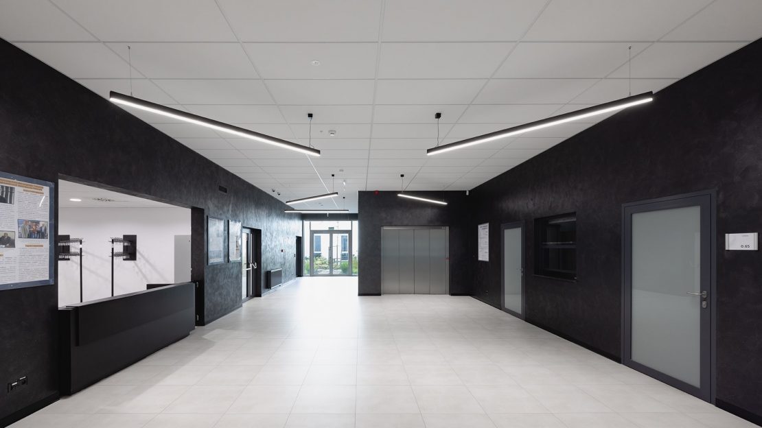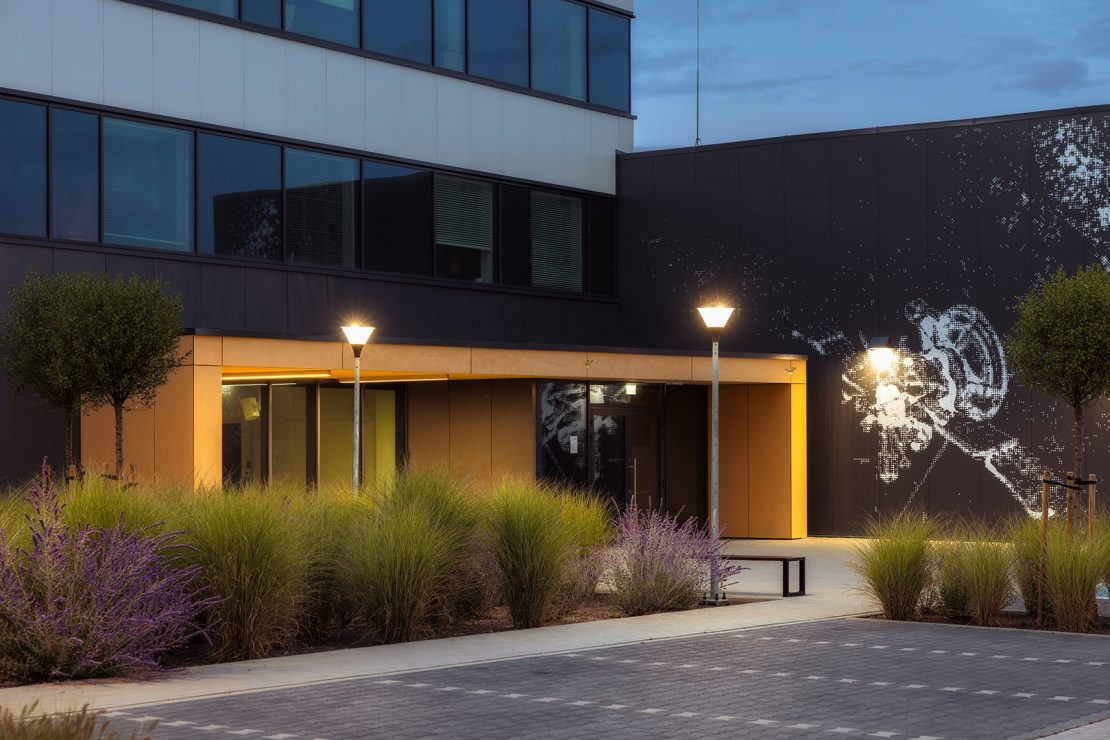 Na zewnątrz kompleksu zastosowano rozwiązania takie jak PAREO NEW LED, STREETPARK MINI LED PREMIUM, FARGO, FASAD ODL04 LED oraz LUXWALL LED. Zapewniają one nie tylko wysoką wydajność i odporność na warunki atmosferyczne, ale również podkreślają architekturę budynku i tworzą bezpieczne otoczenie po zmroku.