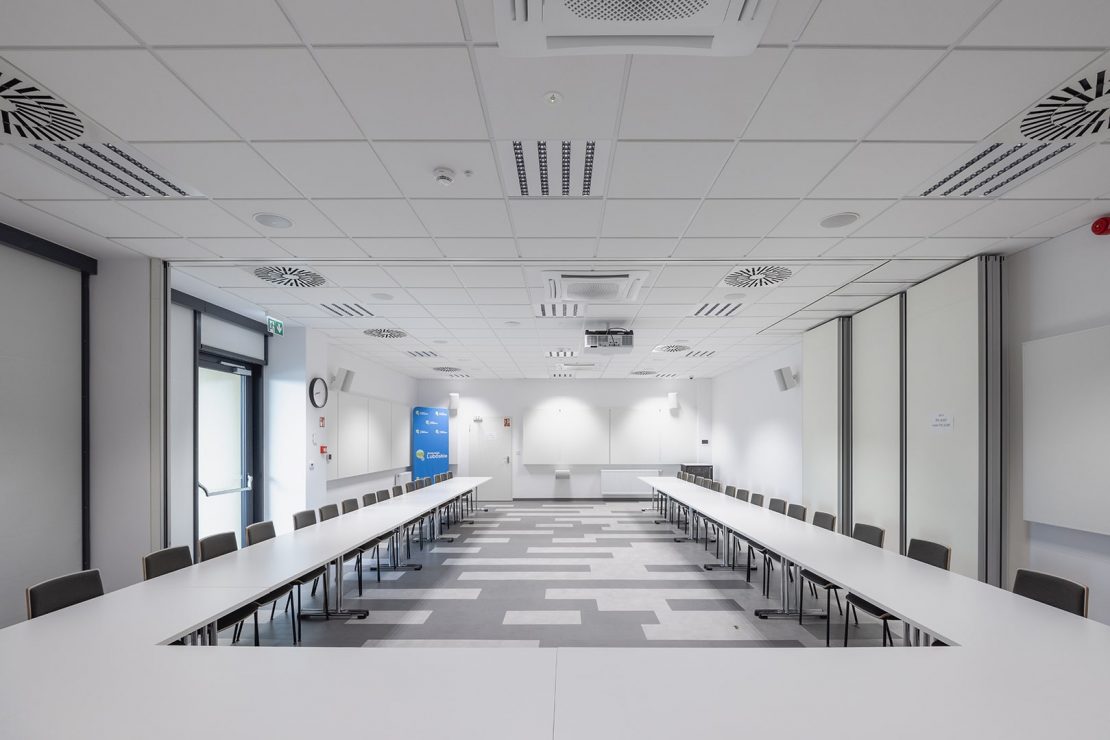 Sale konferencyjne i biura doświetlają rozwiązania z serii EUROPANEL LED, BACKPANEL LED oraz DOMINO LOW UGR o niskim współczynniku olśnienia, również w wersji Tunable White z funkcją regulacji barwy światła, poprawiając koncentrację i komfort pracy.