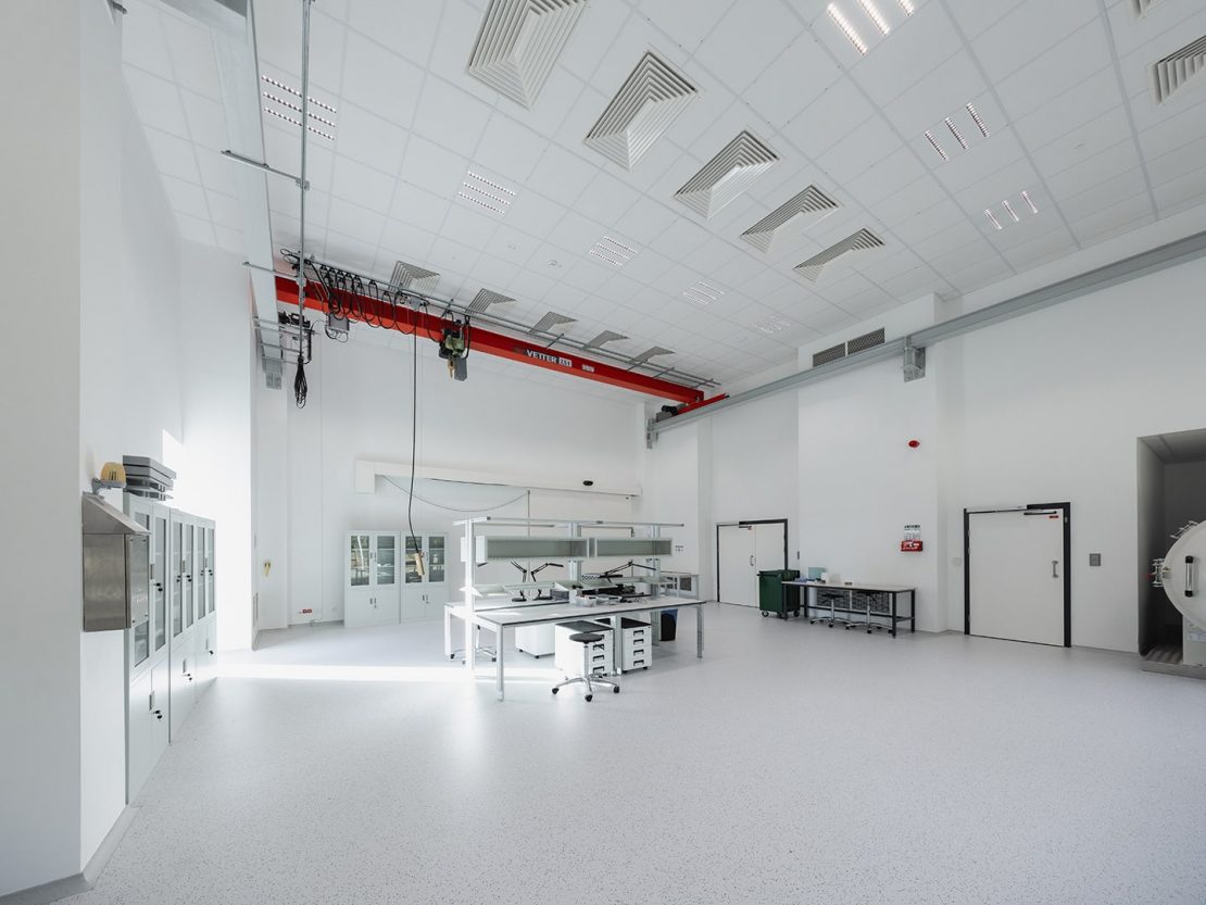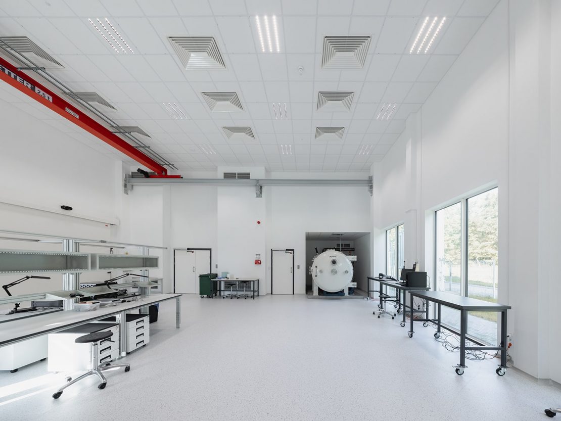 Każde z laboratoriów ma unikalne wymagania, w których światło pełni istotną rolę. W laboratorium czystego montażu systemów satelitarnych konieczna jest sterylność (ISO 7) i równomierne, pozbawione olśnienia oświetlenie, spełniające normy ISO oraz zapewniające doskonałe odwzorowanie barw CRI>95. Dzięki temu specjaliści mogą z najwyższą precyzją montować czułe podzespoły elektroniczne czy prowadzić testy elektroniki satelitarnej.